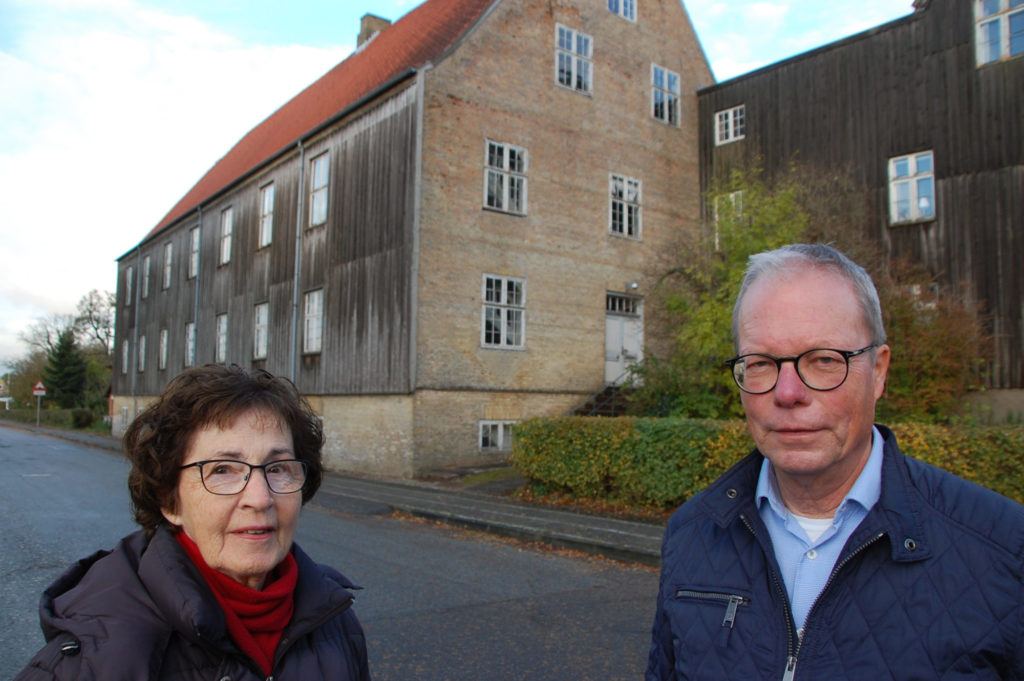To der står i spidsen for Brødremenigheden. Til venstre formanden, Kate Thomsen og til højre menighedens præst, Jørgen Bøytler – her ved Enkehuset, som hører til blandt menighedens og byens historiske bygninger.