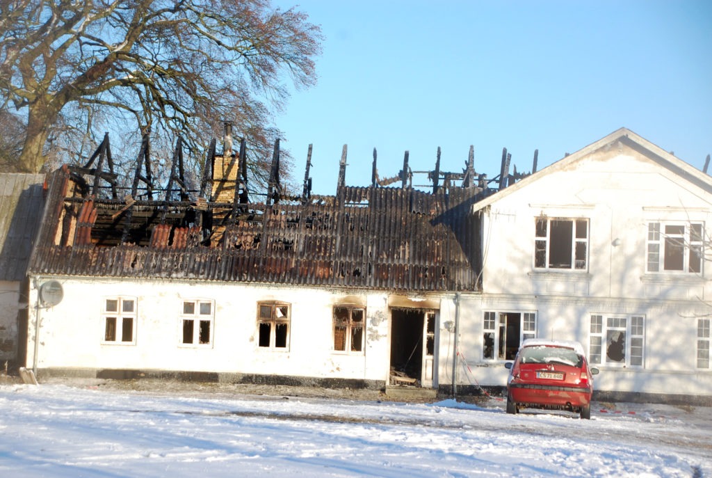 Således tog stuehuset ved gården Grønvang i Skanderup sig ud, da de sidste gløder var slukket efter branden juleaften. ( Foto: sebro-press).