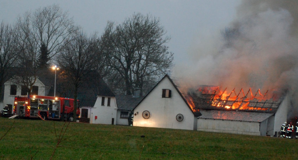 VAMDRUP: En gård med dyrehold står i øjeblikket i flammer på adressen Ødisvej 11 6580 Vamdrup. Brandvæsner fra TrekantBrands stationer i Vamdrup, Kolding og Lunderskov bekæmper i øjeblikket branden. (Foto: sebro-press).