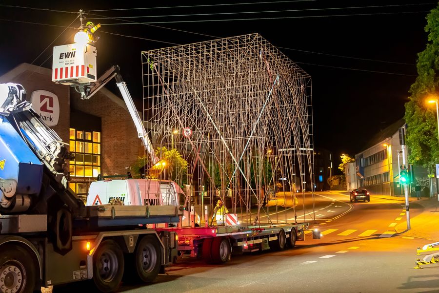 Det er kommunens kulturudvalg, der har hittet på, at porten midlertidig skal placeres ved Søterrassen ved Slotssøen. Og der lægges fra udvalgets side op til, at den senere skal placeres et sted syd for Kolding. Og her er der peget på rundkørslen syd for Vonsild!