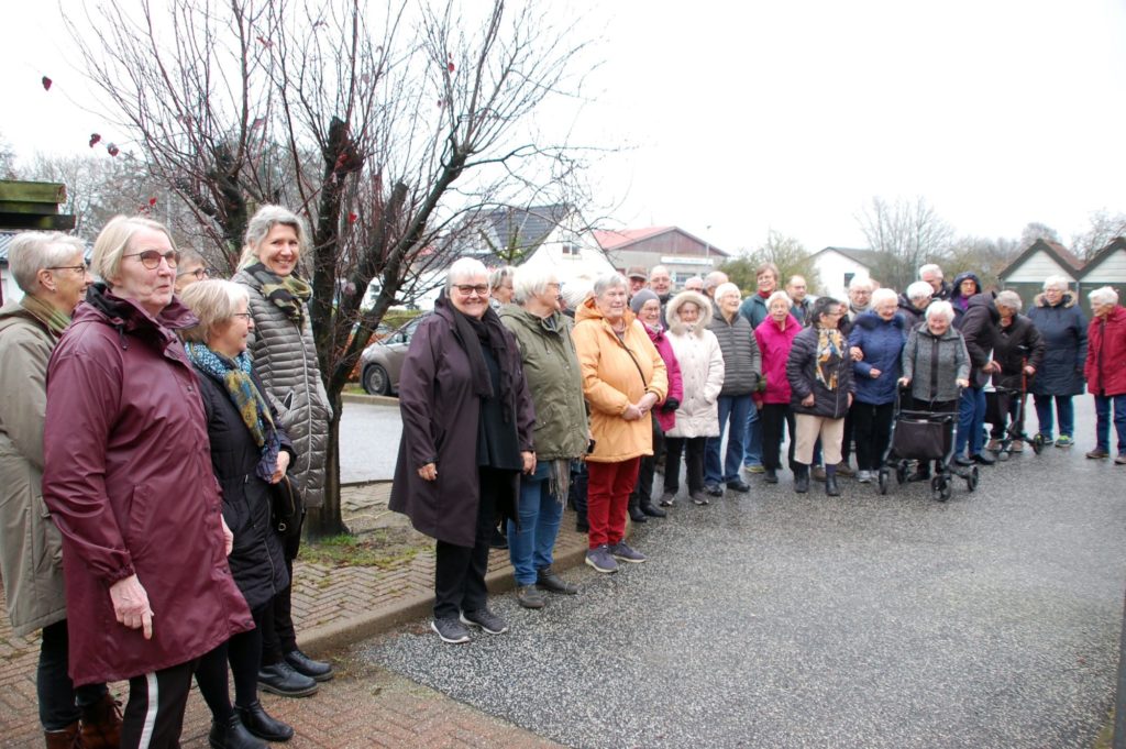 Afsløringen af skiltet på aktivitetshuset samlede en pæn skare mennesker. Her ses et udsnit af dem.