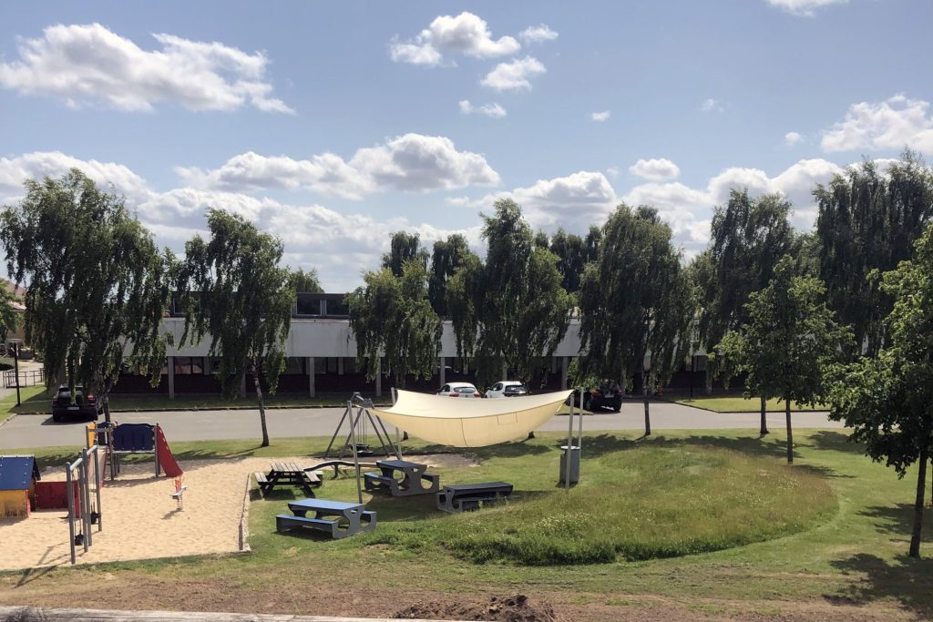 Forpladsen ved Multihuset i Lunderskov som skal optimeredes og samtidig give plads til skulpturen “Lunderskov Universe”