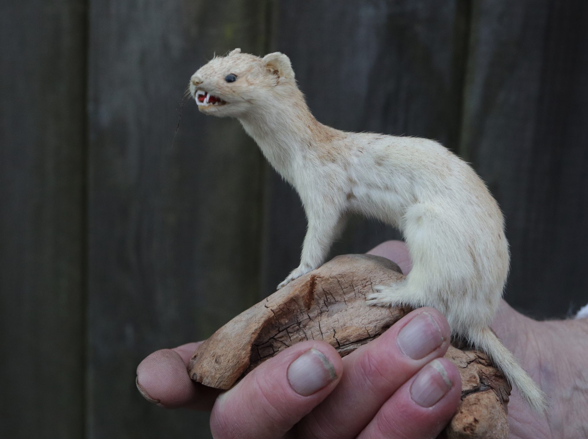 For at demonstrere størrelsen fik jeg min nabo til at holde en udstoppet svensk eller norsk brud i hånden.