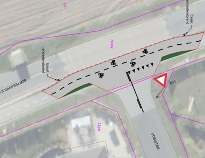 LUNDERSKOV: Nu fjernes en farlig og kritiseret trafikfælde i Lunderskov snart. Og endelig, kan måske sige. Det handler om stedet på Sortebjergvej, hvor sidevejen, Udsigten, støder til. Som det er nu består fælden i, at trafikken på den ret befærdede Sortebjergvej fra syd mod nord har ubetinget vigepligt for trafikken fra sidevejen Udsigten. Mens trafikken ad Sortebjergvej fra nord mod syd ikke har været underkastet samme vigepligt for trafikken fra Udsigten.