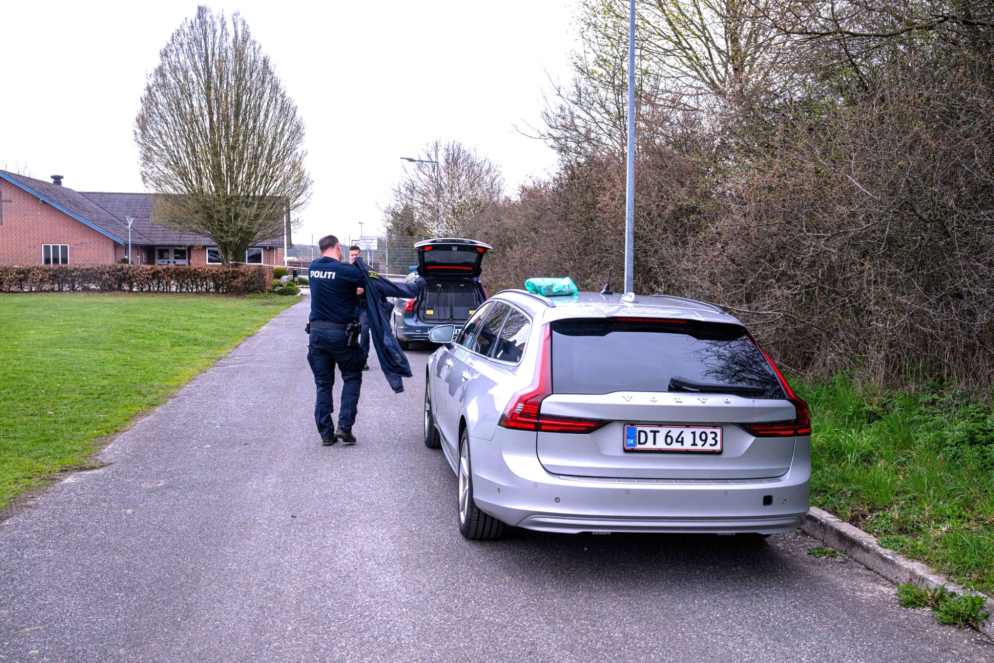 Politiet rykkede talstærkt ud med både betjente og hunde til området omkring Kobbelvænget i Lunderskov, hvor blandt andet byens menighedshus blev afspærret, som et led i efterforskningen.