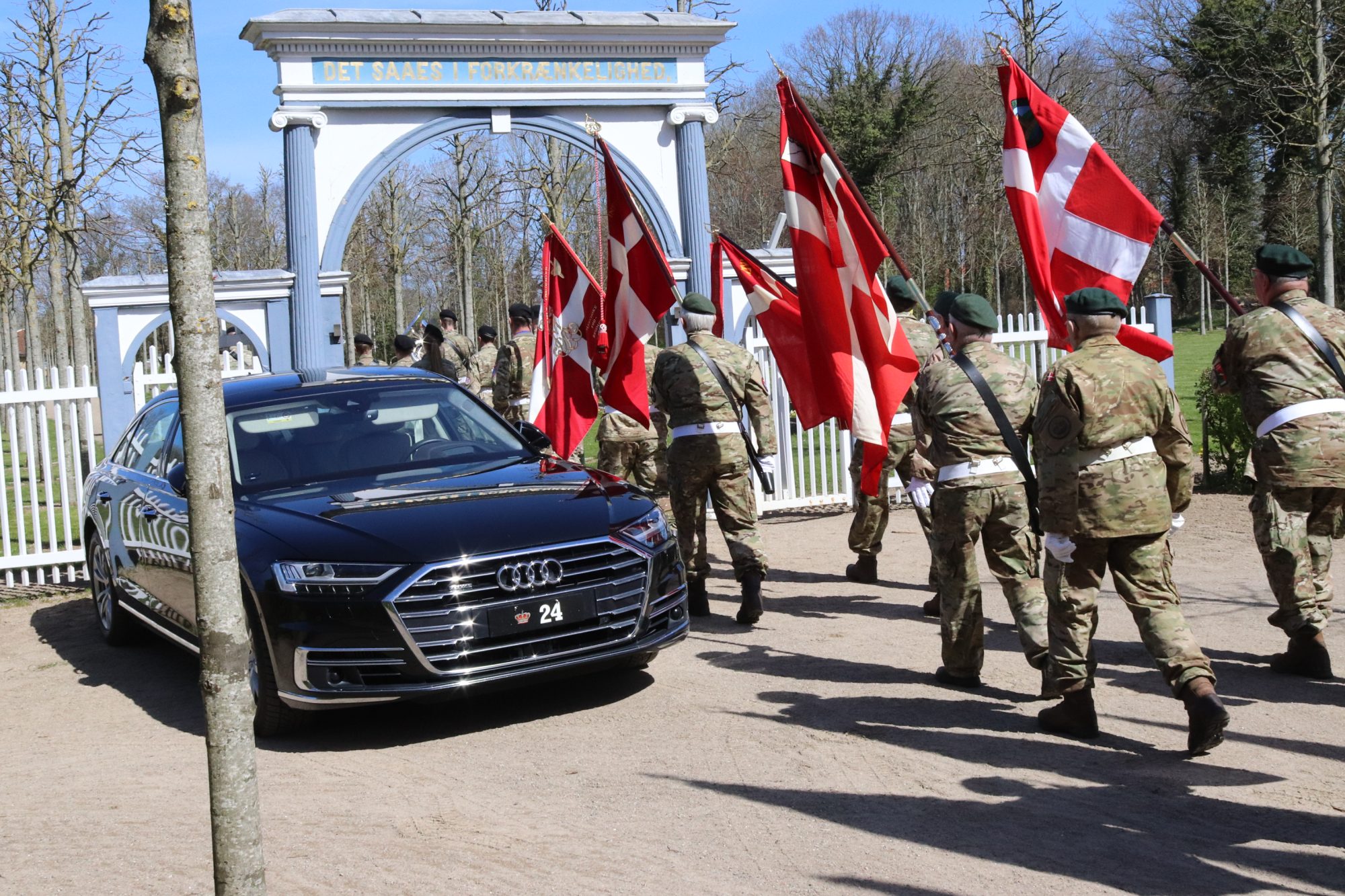 Hans kongelige bil med nummerpladen Krone 24 holdt ved indgangen.
