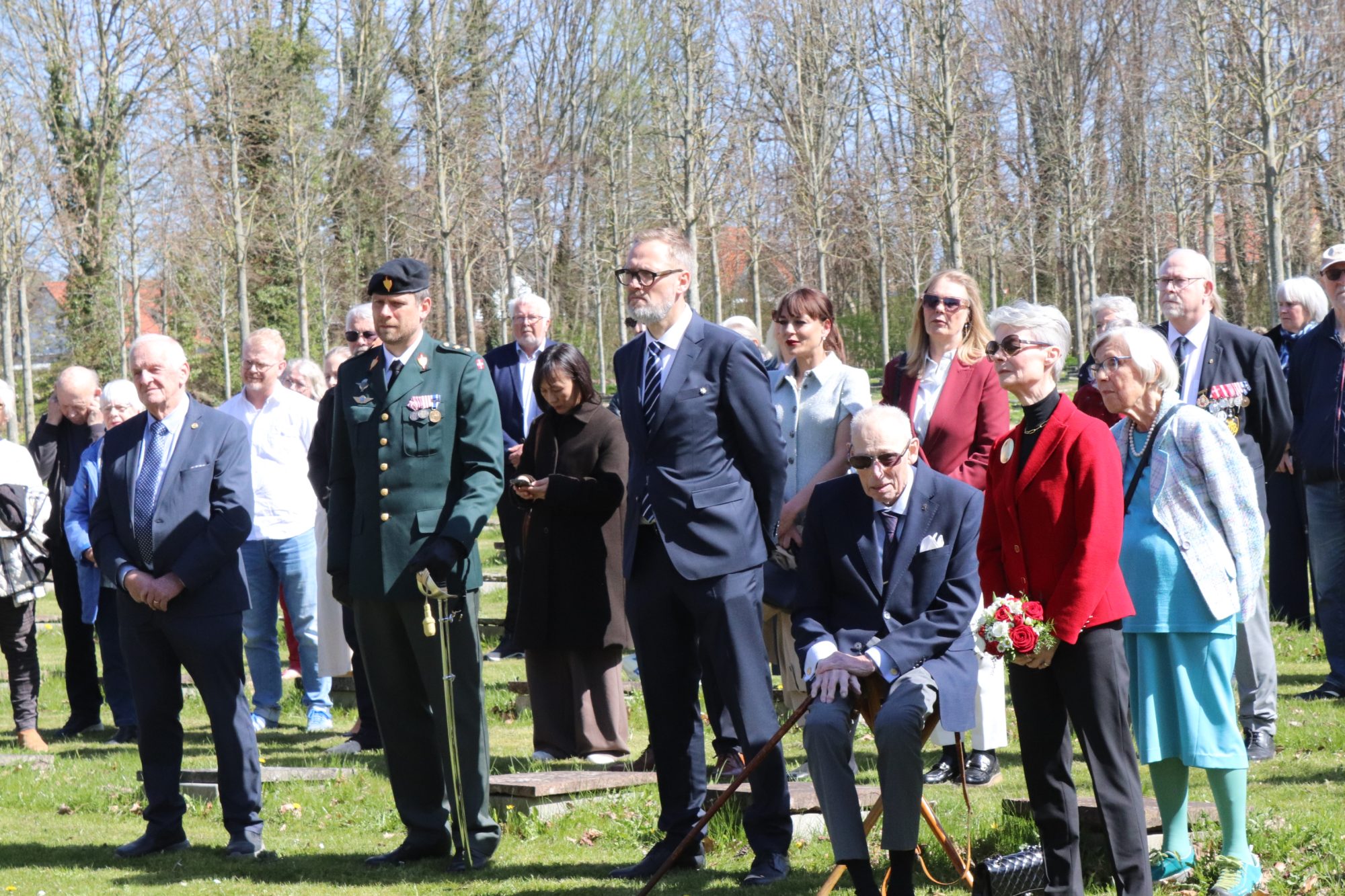 Derfor måtte han sidde ned under højtideligheden på Brødremenighedens kirkegård Gudsageren i torsdags.